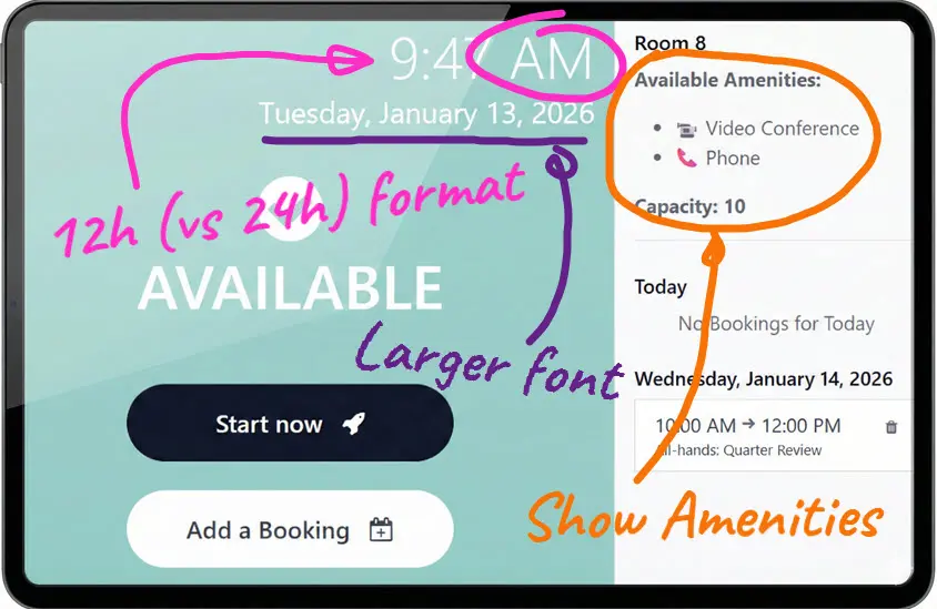 Knowing the room reservation will be kept in sync with Google Workspace, as well as the reservation tablets in front of the conference rooms.