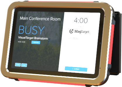 The room reservation tablet in front of the conference room instantly updates to reflect the change.
